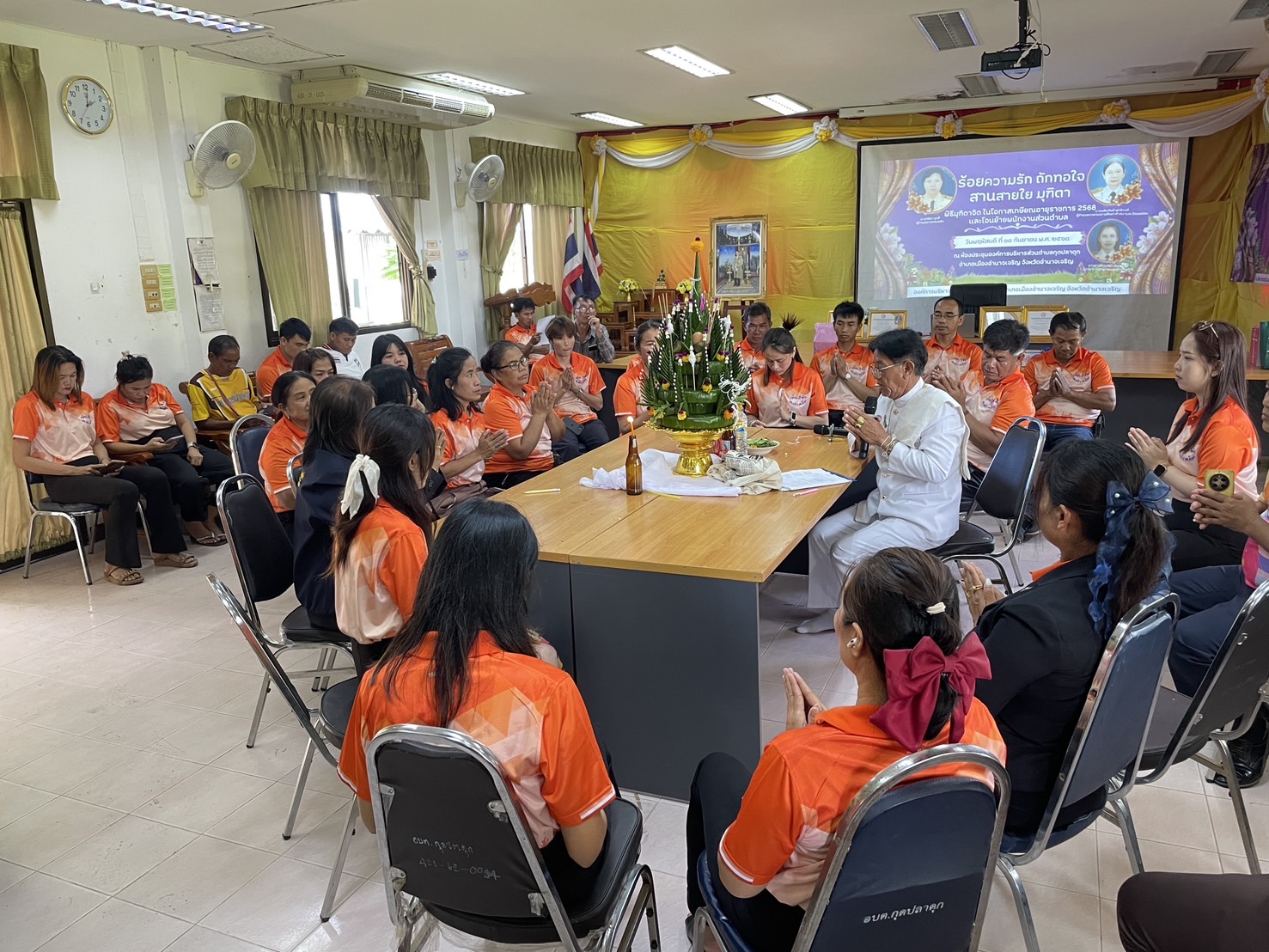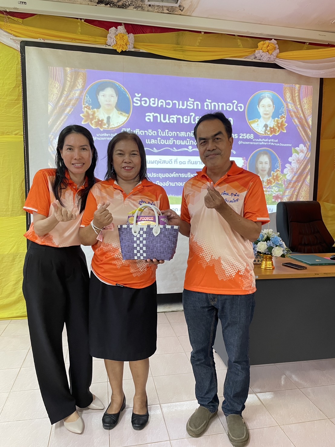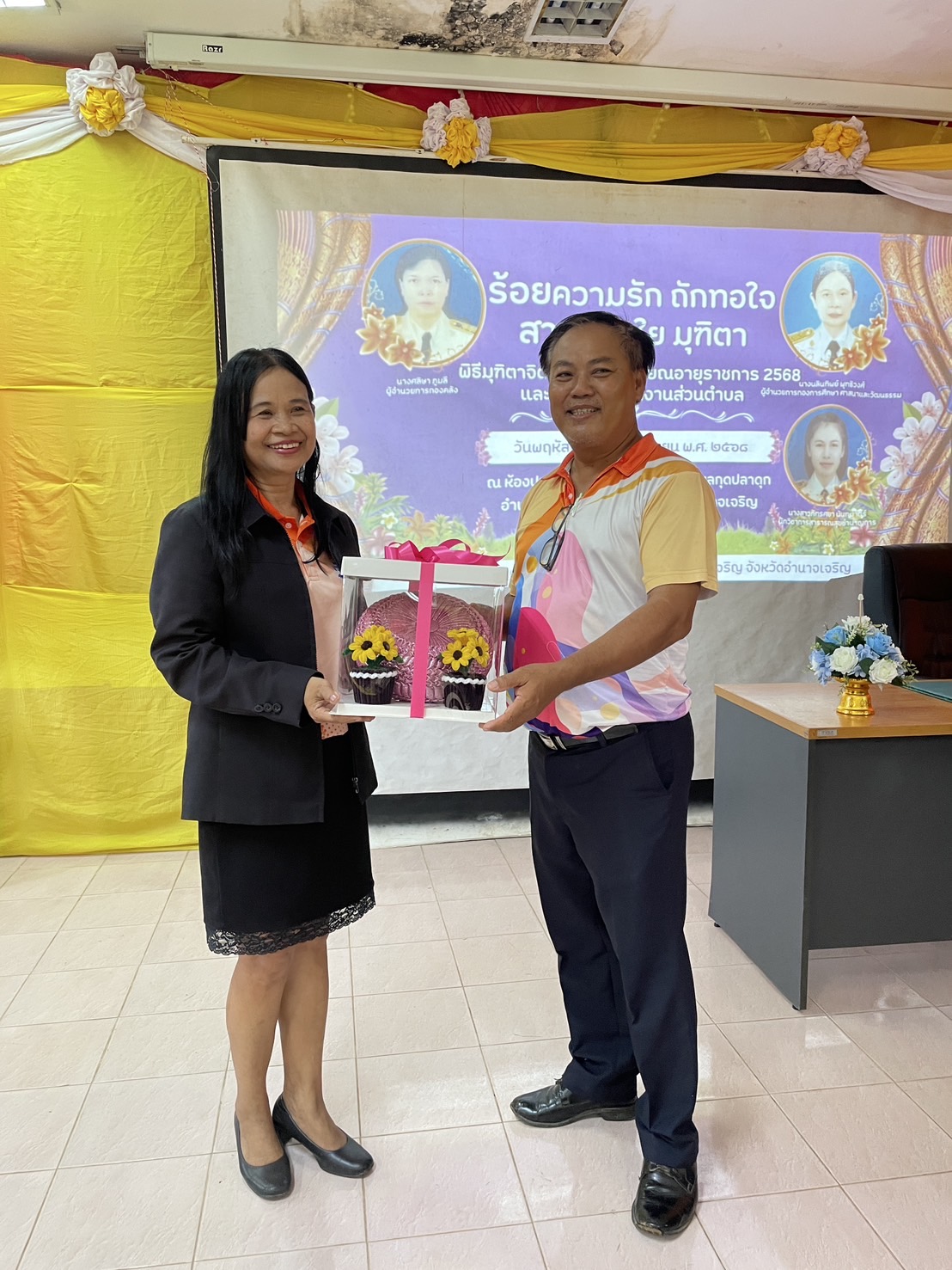 พิธีบายศรีสู่ขวัญให้กับนางนลินทิพย์ พุทธิวงศ์ ผู้อำนวยการสถานศึกษา และนางศลิษา ภูมลี เนื่องในโอกาสเกษียณอายุราชการ ประจำปีการศึกษา 2568 โดยมี เจ้าหน้าที่ อบต.กุดปลาดุก คณะครู ร่วมผูกแขนบายศรีสู่ขวัญ พร้อมมอบของที่ระลึก