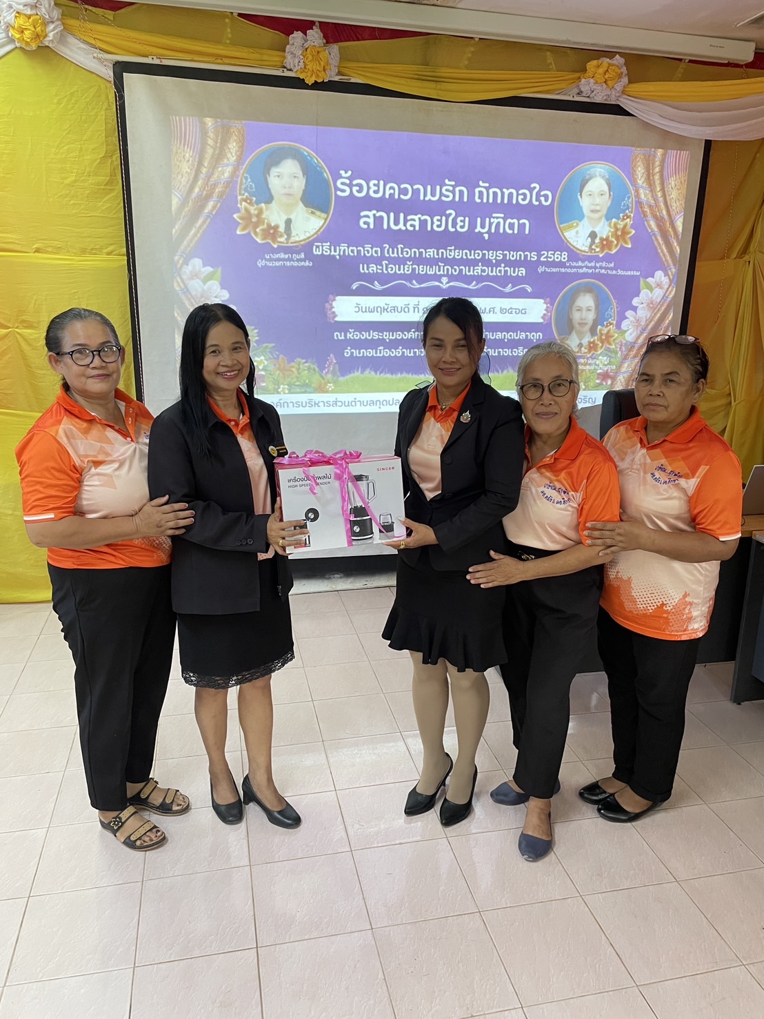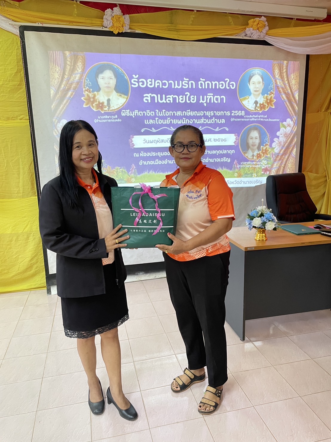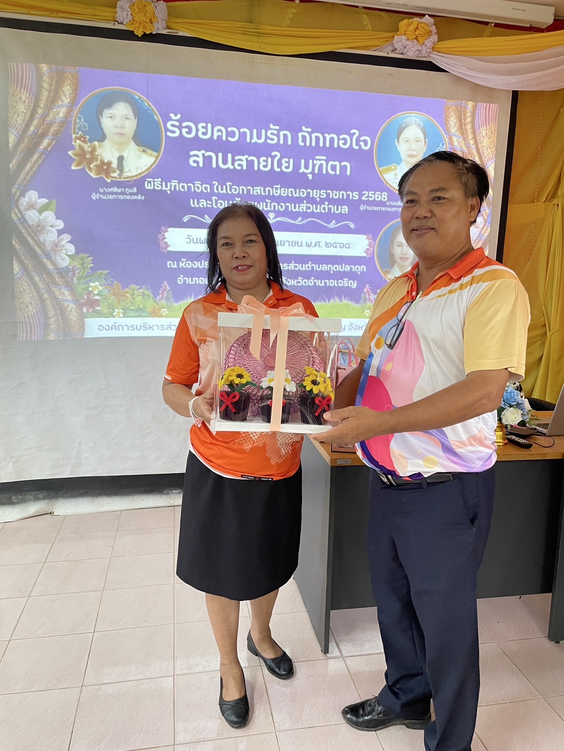 วันพฤหัสบดี, 18 กันยายน 2568 16:02วันที่ 18 กันยายน 2568 องค์การบริหารส่วนตำบลกุดปลาดุก นำโดย นายอนุชา พรมทา นายกองค์การบริหารส่วนตำบลกุดปลาดุก พร้อมด้วยผู้บริหาร หัวหน้าส่วนราชการ พนักงานส่วนตำบล และพนักงานจ้าง จัดพิธีบายศรีสู่ขวัญให้กับนางนลินทิพย์ พุทธิวงศ์ ผู้อำนวยการสถานศึกษา และนางศลิษา ภูมลี เนื่องในโอกาสเกษียณอายุราชการ ประจำปีการศึกษา 2568 โดยมี เจ้าหน้าที่ อบต.กุดปลาดุก คณะครู ร่วมผูกแขนบายศรีสู่ขวัญ พร้อมมอบของที่ระลึก เสริมสร้างกำลังใจแก่ผู้เกษียณอายุ เพื่อเป็นการรำลึกคุณความดี และเพื่อเป็นการแสดงความขอบคุณ ยกย่อง เชิดชูเกียรติให้ปรากฏ และจารึกไว้ในความทรงจำ เป็นต้นแบบที่ดี ณ ห้องประชุม องค์การบริหารส่วนตำบลกุดปลาดุก อำเภอเมืองอำนาจเจริญ จังหวัดอำนาจเจริญ