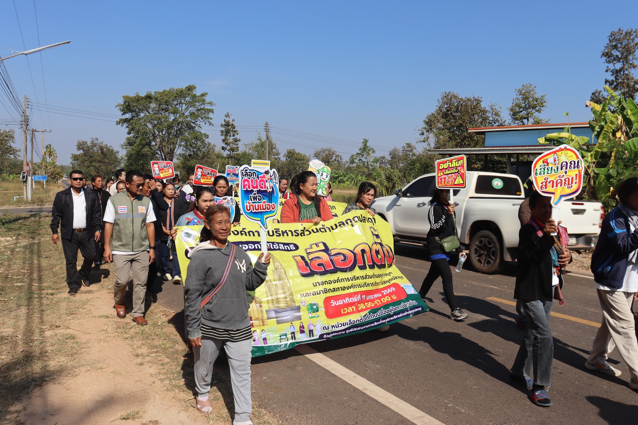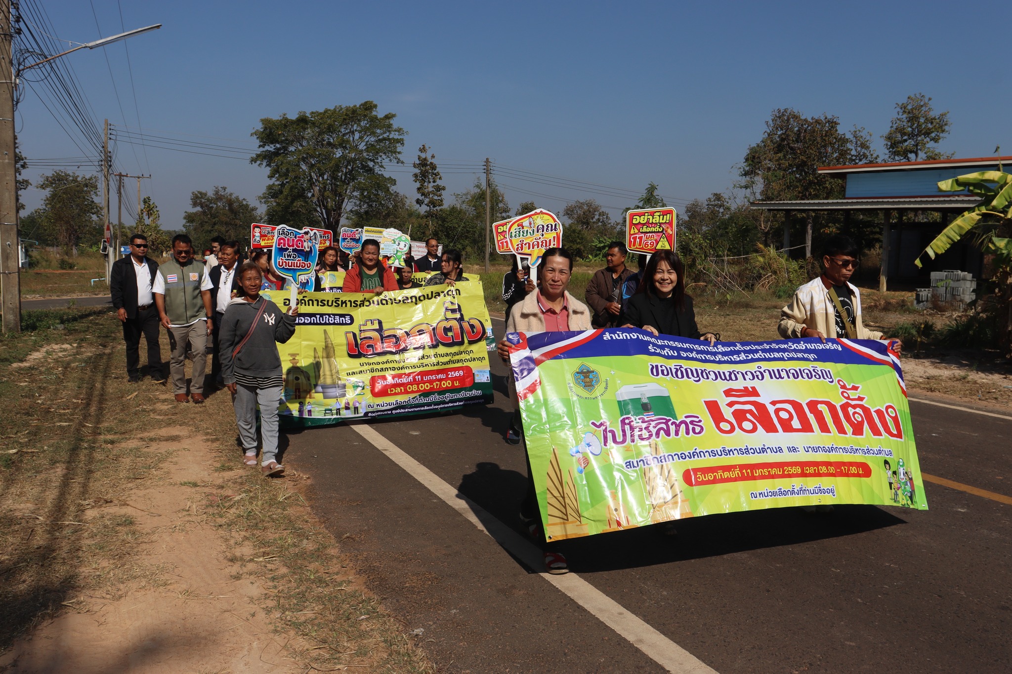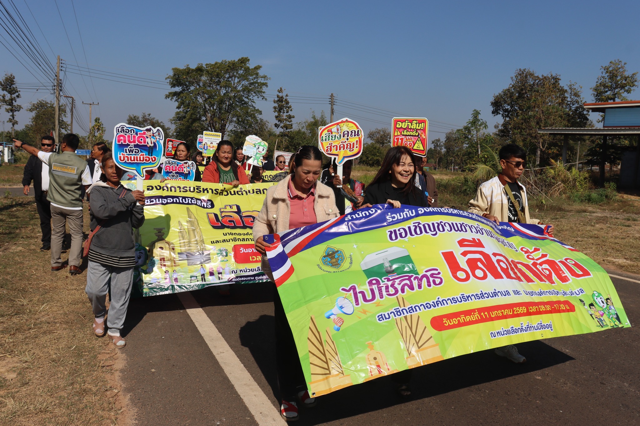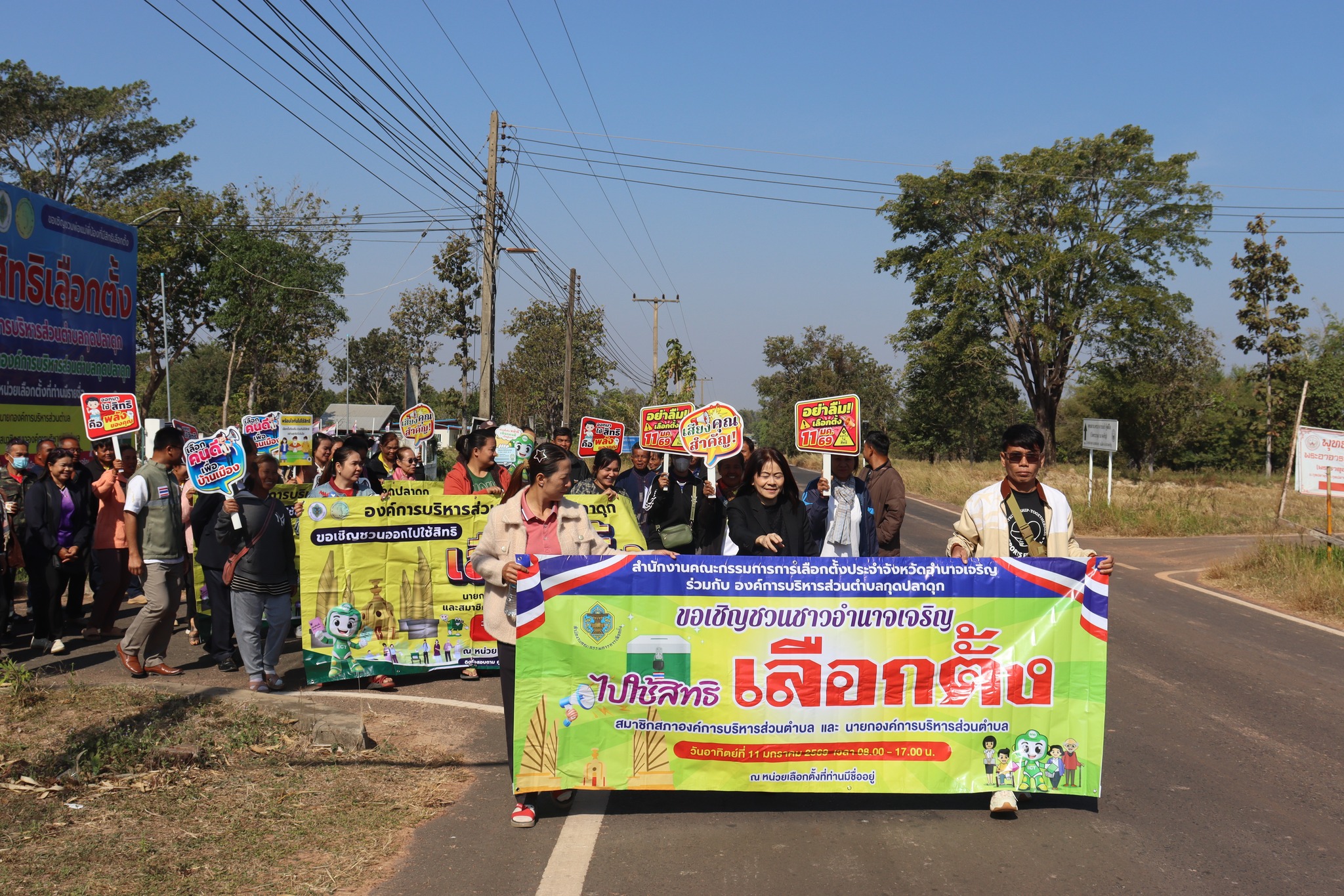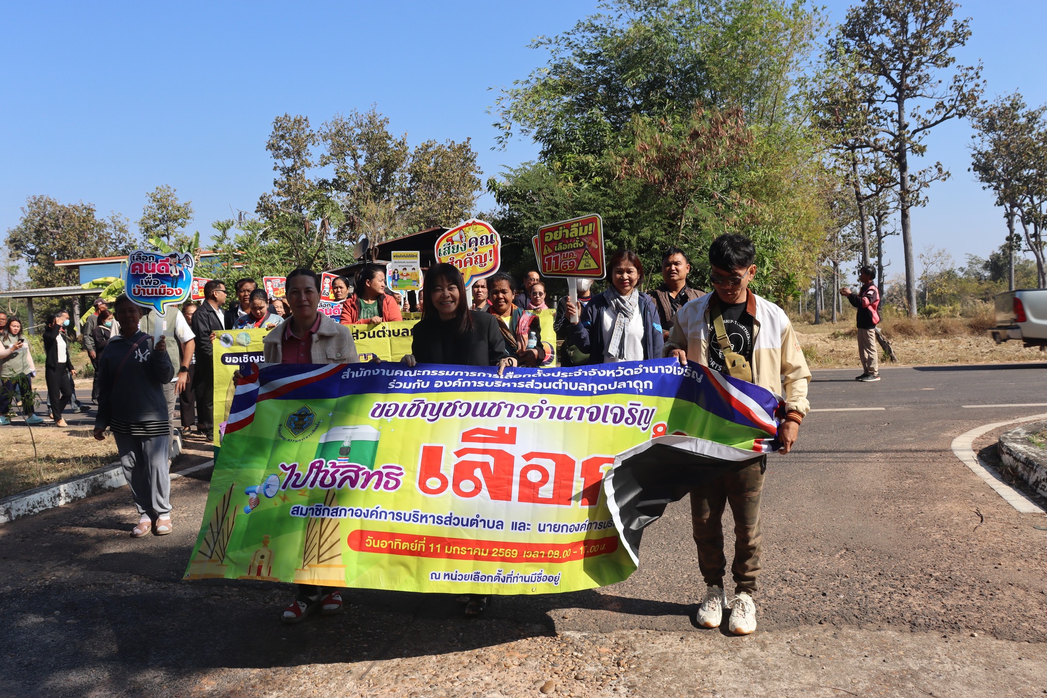 วันพฤหัสบดี, 08 มกราคม 2569 15:08วันที่ 8 มกราคม 2569 เวลา 08.30 น.?? งานเลือกตั้ง องค์การบริหารส่วนตำบลกุดปลาดุก นำโดย นางสาววรารัตน์ วงศ์ษา ผู้อำนวยการการเลือกตั้งประจำองค์การบริหารส่วนตำบลกุดปลาดุก เป็นประธานปล่อยขบวนเดินรณรงค์เชิญชวนออกไปใช้สิทธิ์เลือกตั้งสมาชิกสภาองค์การบริหารส่วนตำบลกุดปลาดุก ในวันอาทิตย์ ที่ 11 มกราคม 2569 ตั้งแต่เวลา 08.00 น.- 17.00 น. โดยมี หัวหน้าส่วนราชการ พนักงานส่วนตำบลพนักงานจ้าง ผู้นำชุมชน ประชาชน คณะครู ร่วมเดินขบวนในพื้นที่ ตำบลกุดปลาดุก อำเภอเมืองอำนาจเจริญ จังหวัดอำนาจเจริญ