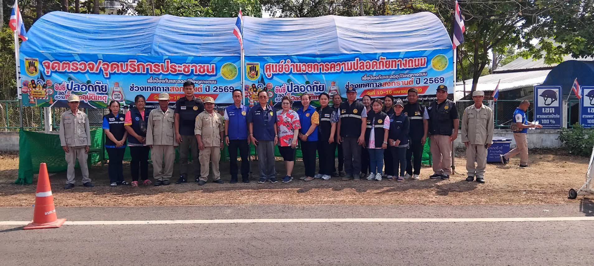 นายนิกร ทองจิตร นายอำเภอเมืองอำนาจเจริญ กรมการปกครอง ลงพื้นที่ตรวจเยี่ยมเจ้าหน้าที่ผู้ปฏิบัติงานการตั้งด่านชุมชนขององค์การบริหารส่วนตำบลกุดปลาดุกในพื้นที่ ช่วงเทศกาลสงกรานต์ 2569